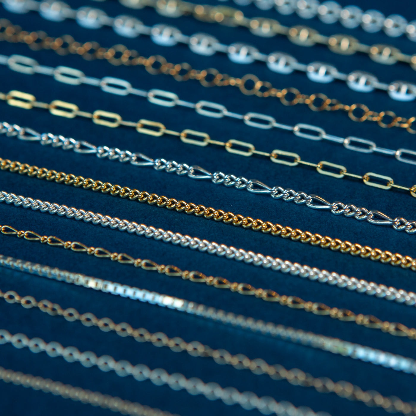 Choose from 14k solid gold, gold-filled, and sterling silver chains in our NW Portland, OR jewelry store.