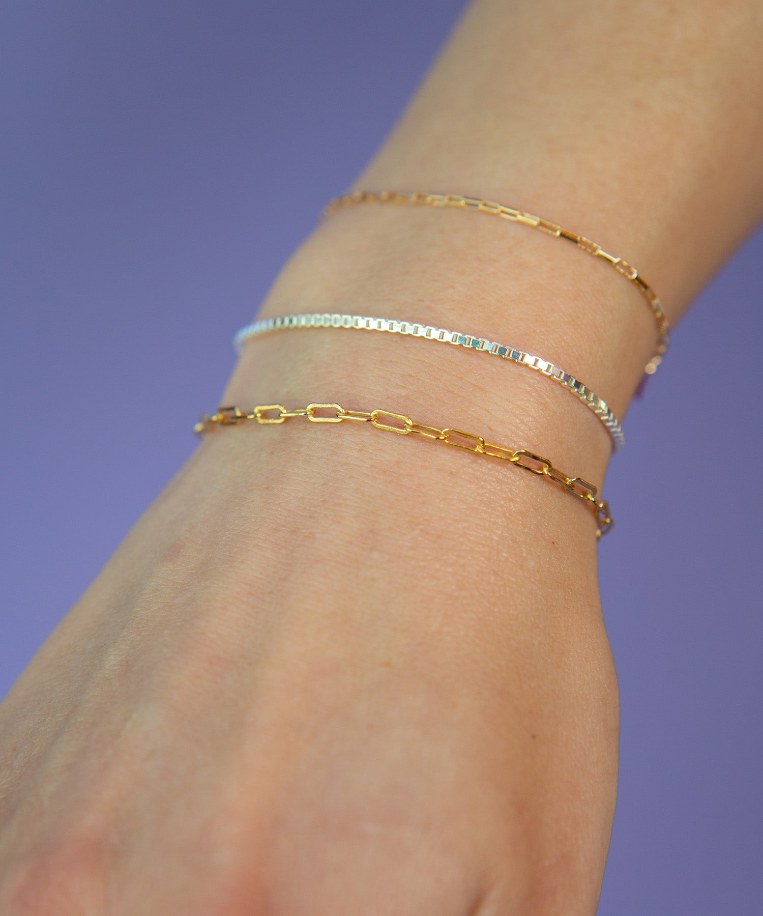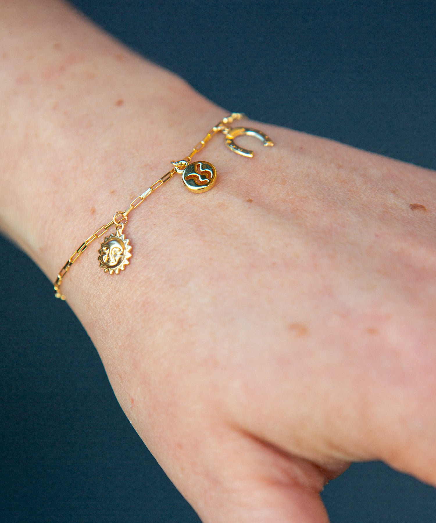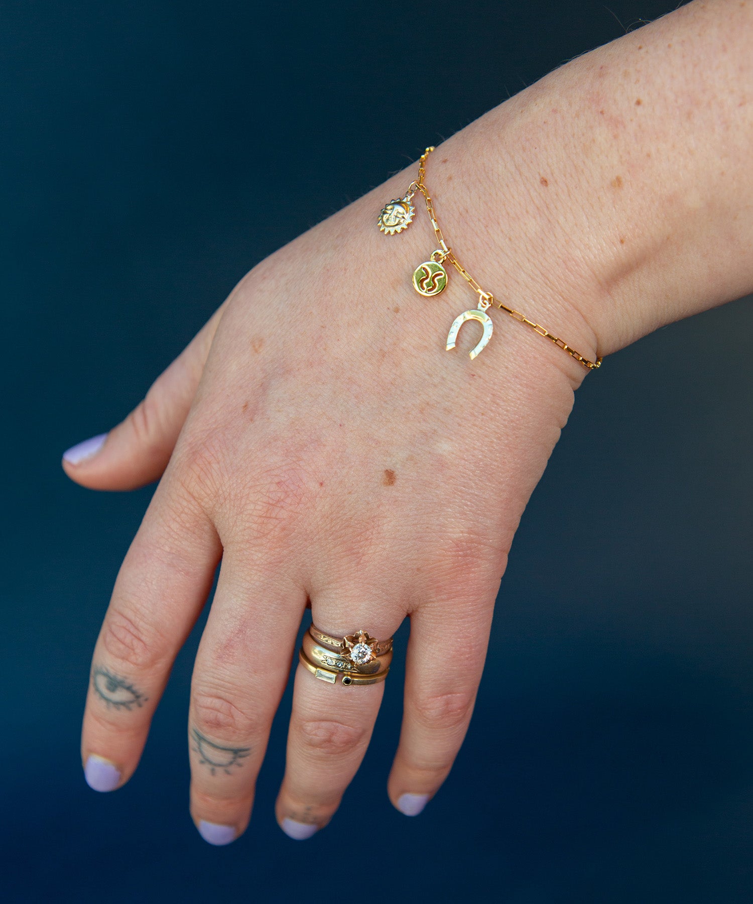 Pricing depends on the specific chains, lengths, and charms selected. Sterling bracelets start at $55. Gold-filled bracelets start at $75. 14k solid gold bracelets start at $98. Find more information in our FAQs.