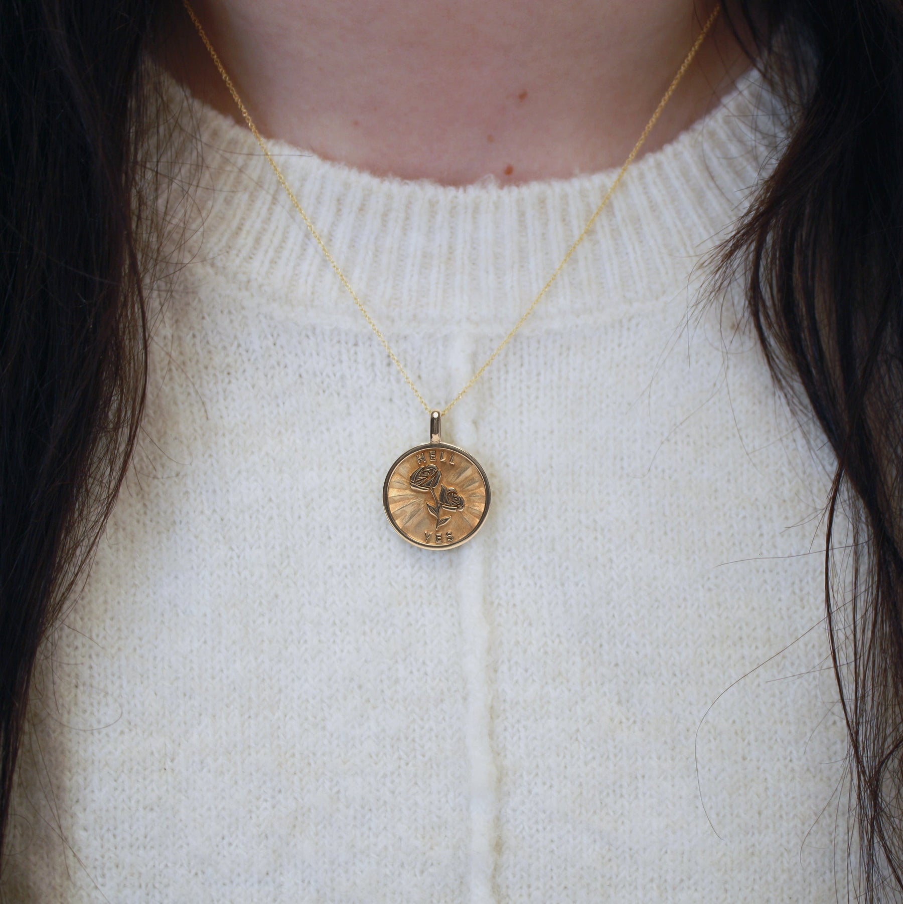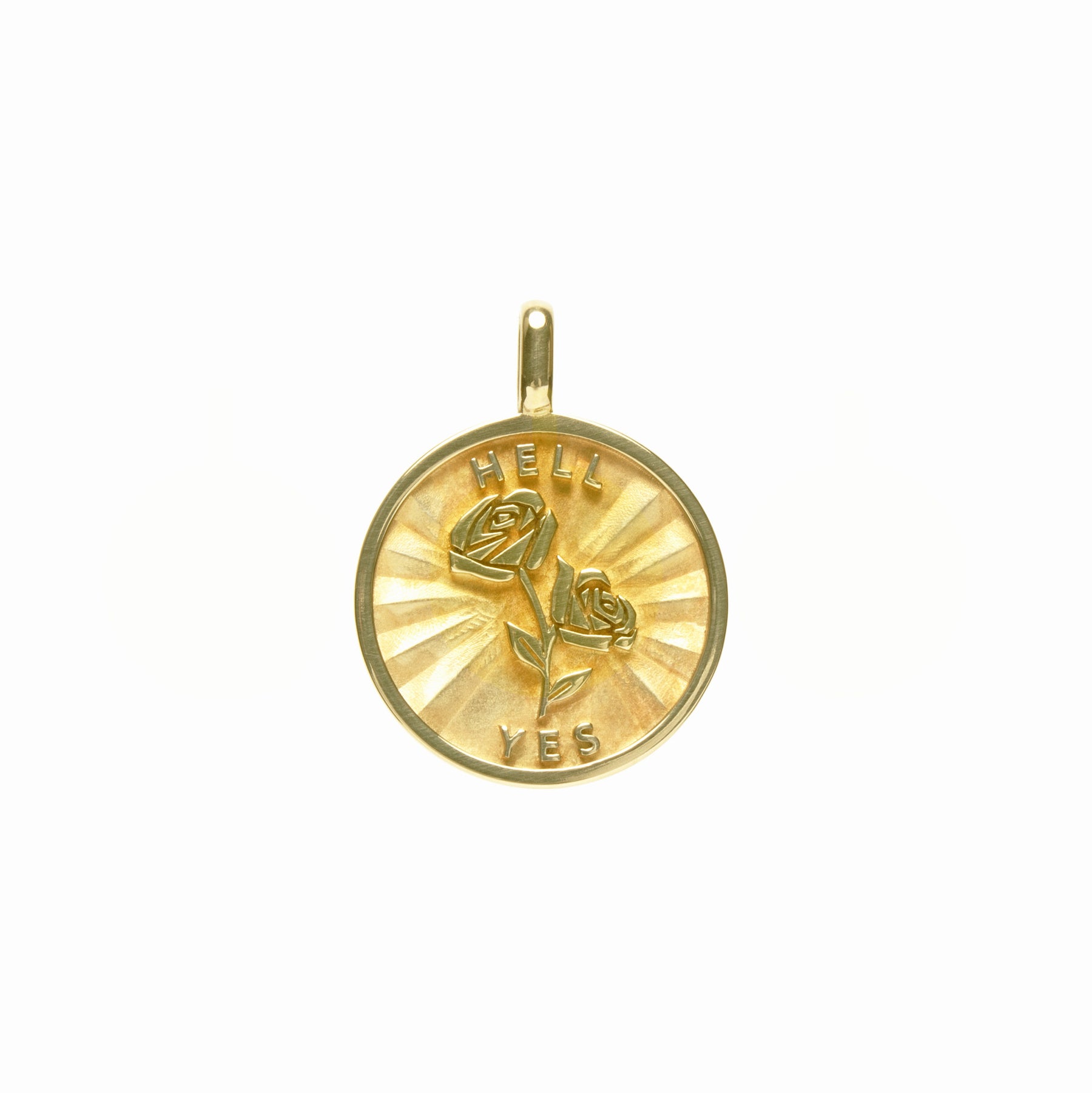 14k Gold Rose + Hell Yes medallion (chain optional)